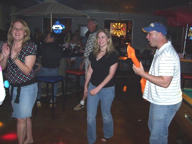 PARTY REPORT: WOW! What a night...first congrats to Julie Sanders who won the Rock-Paper Scissors semi-finals and is now off to Las Vegas to compete for $50,000! It was great to see old friends like Tammy back from Alaska and Bucky who now works for Billy Navarre..and some "smokin' hot" friends like Katy & Mallory who were dressed to kill for alumni bartender Katie's wedding (congrats to Katie and best of luck!)...Happy Birthday to Kim and thanks for bringing your crew to celebrate...you all were a blast! The rest of the story can only be told with the pictures we took...it's worth looking through all the pages...and the party was going so great that Roy the manager kept us 'til one and from 12:01 to close EVERYONE DRANK FOR FREE!!..............................APRIL FOOLS!! (I was gonna do that on the mic after midnight but figured some people might not find it funny:-))...'til Thursday...MR
